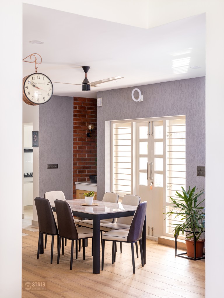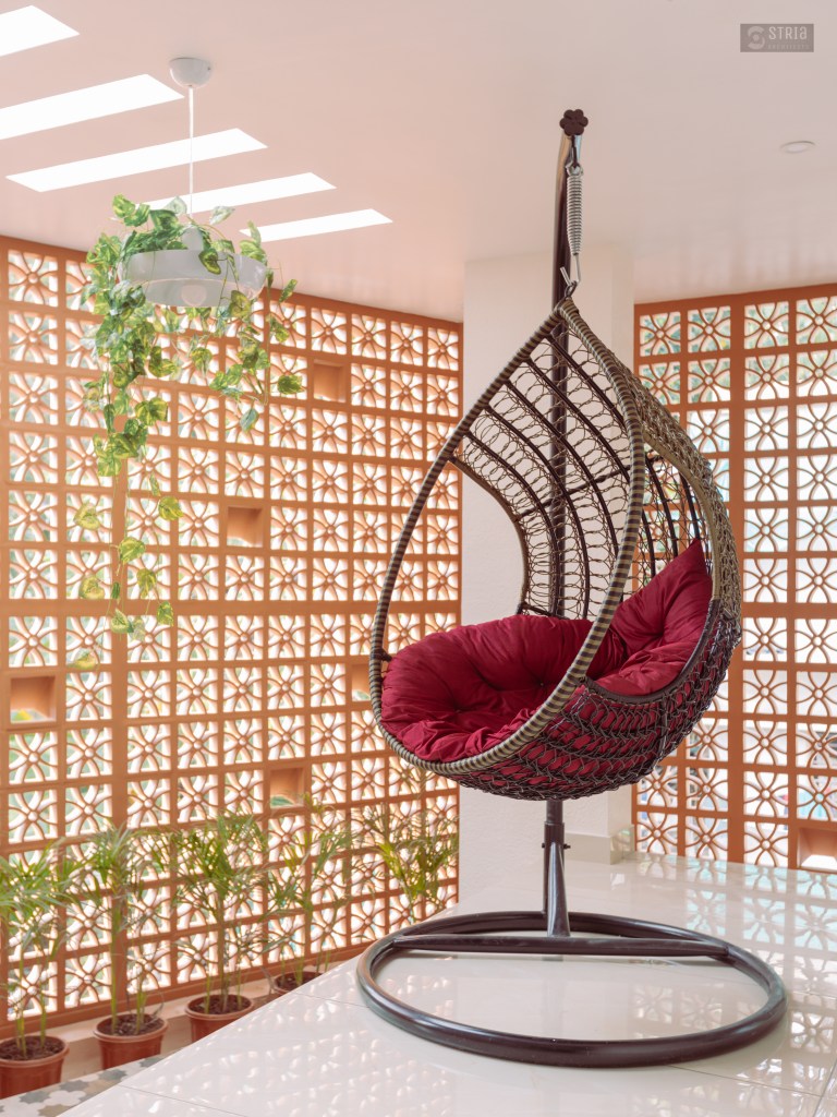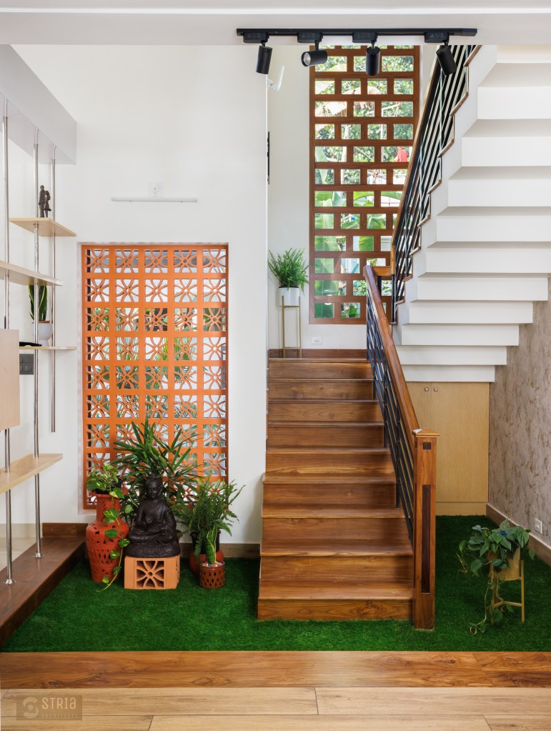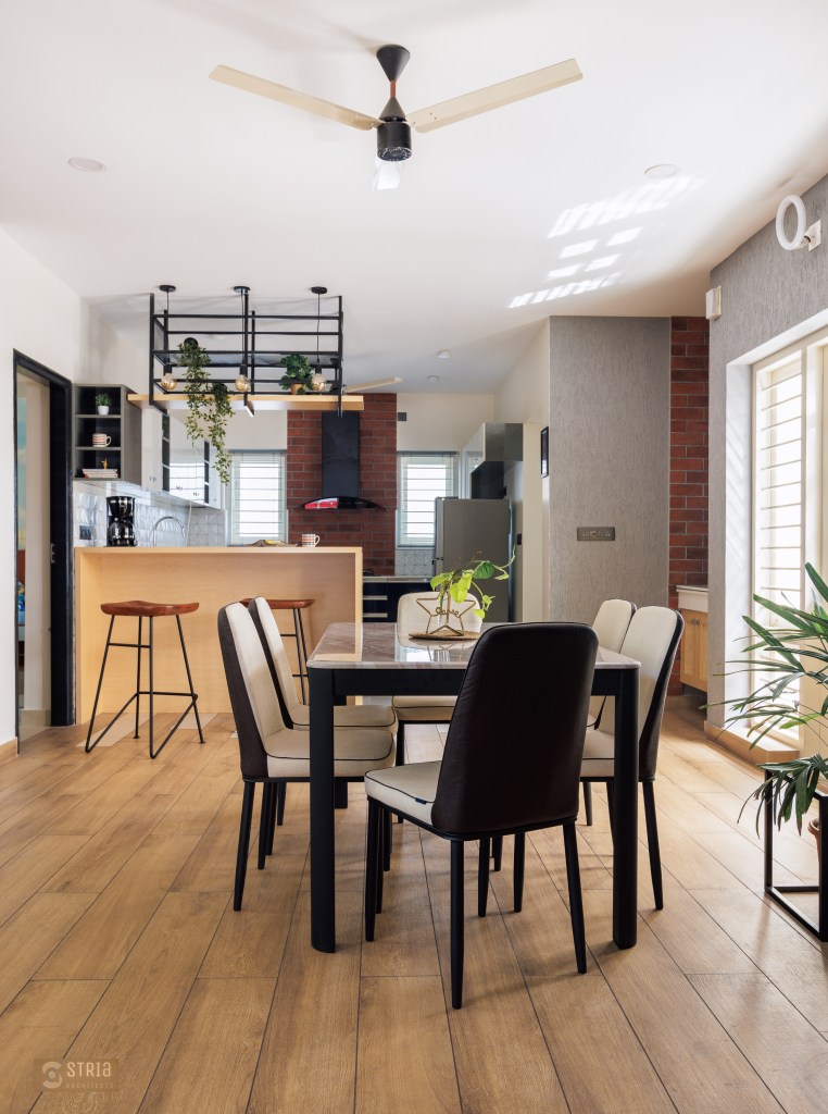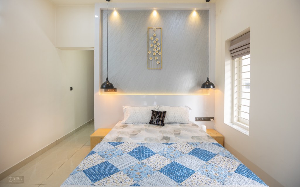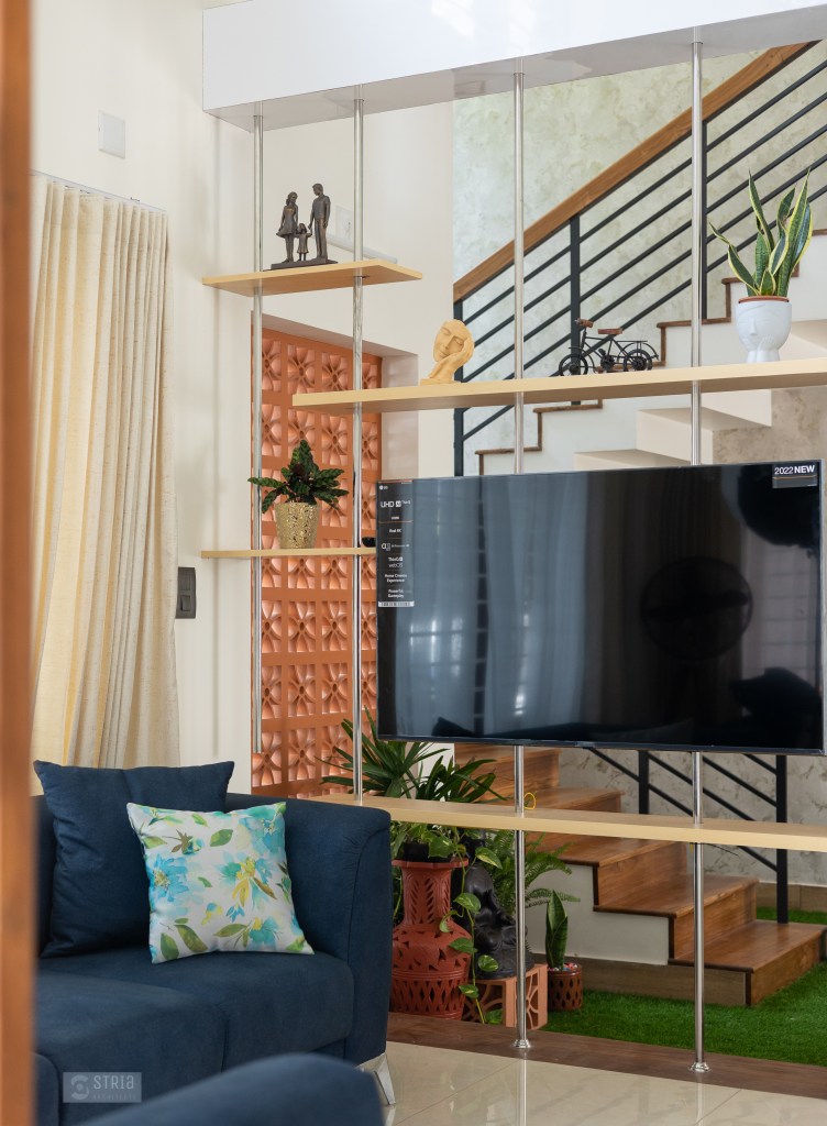 Project Description – Located in the heart of Trivandrum, near Kundamankadavu bridge, the project translates the intention of the family to create a real « family cocoon », where the functional and hearty space is open to the outside, giving rise to diffuse natural light in all the common rooms. Thus, the ambition of the project is to bring conviviality, warmth, and light but also a playful touch to this young family house. A central staircase coupled with the double height and its glazed openings , it becomes a truly playful and dynamic space for the family. Moreover, the interior of the house is punctuated with touches of this same tonality. Also, the second level dramatizes the architectural and formal expression of the front facade.