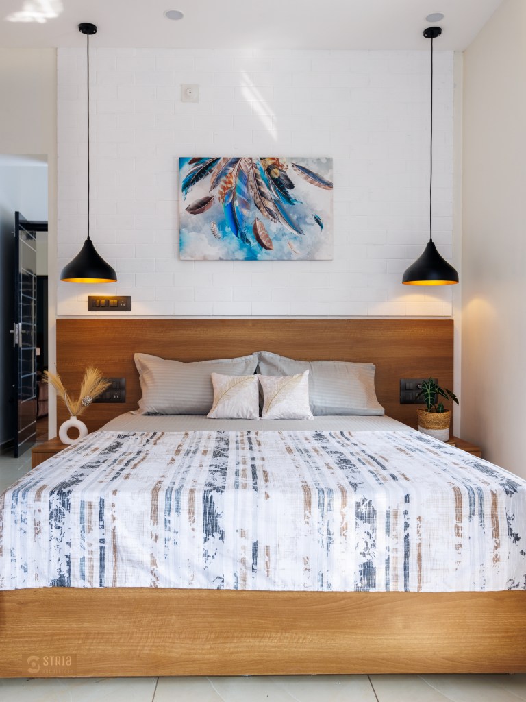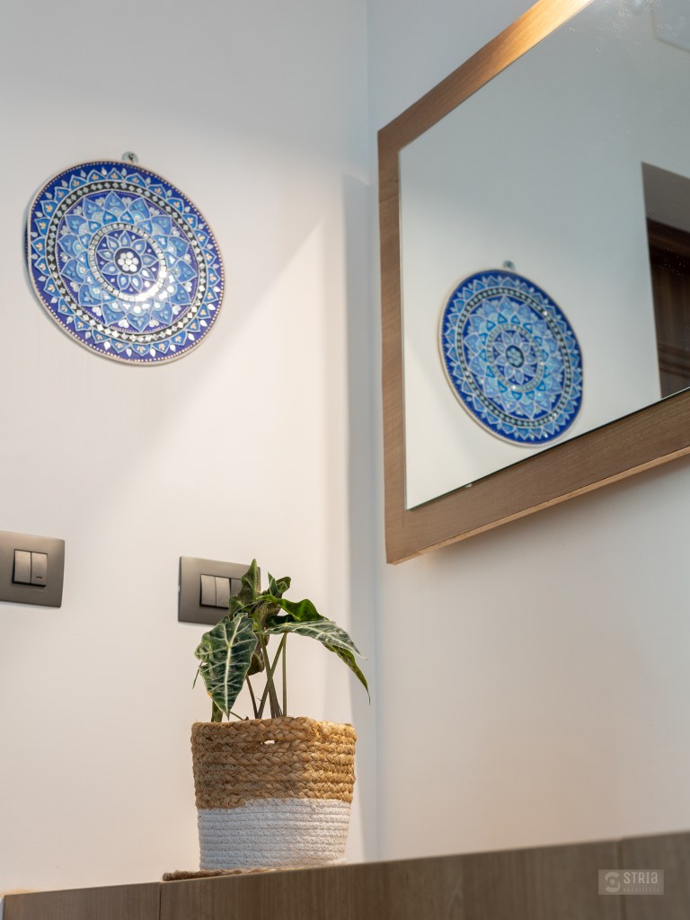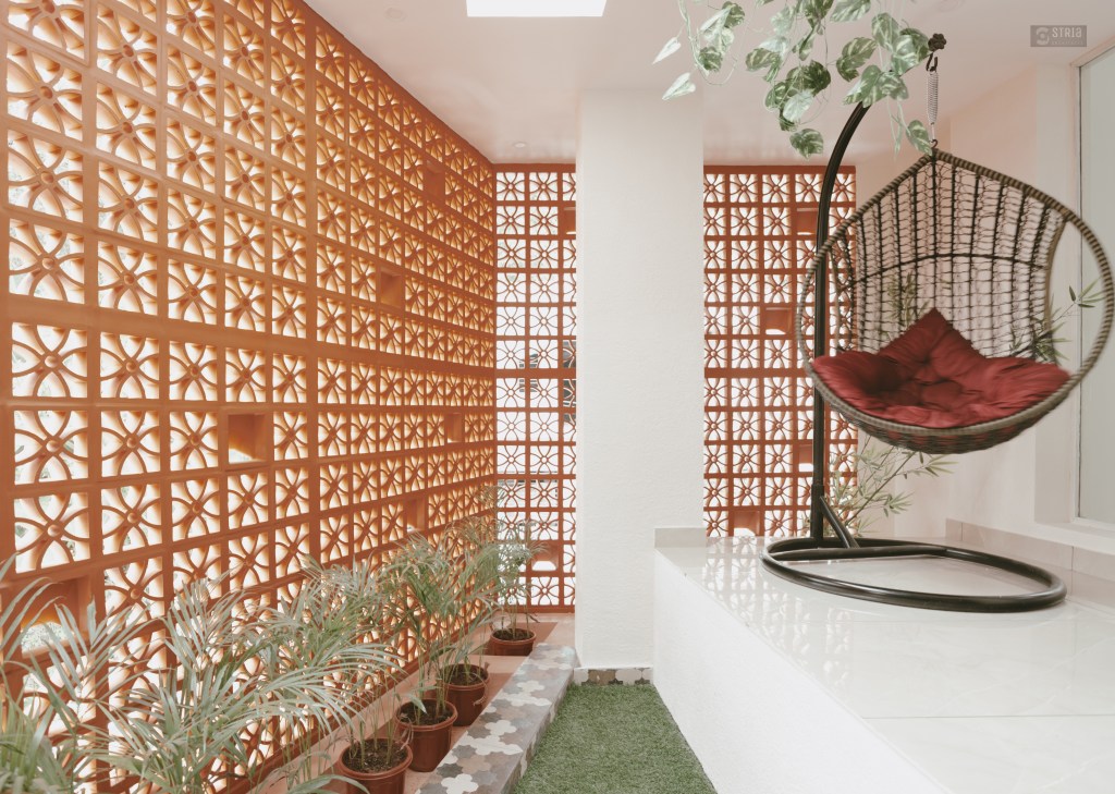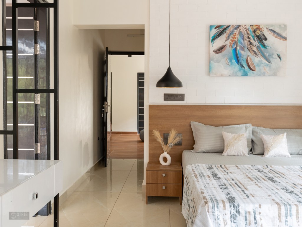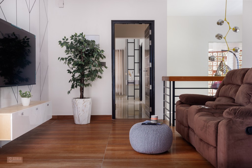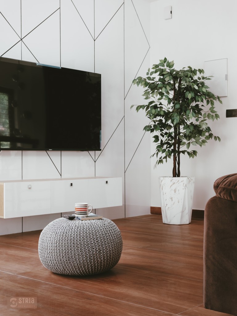 Project Description – Located in the heart of Trivandrum, near Kundamankadavu bridge, the project translates the intention of the family to create a real « family cocoon », where the functional and hearty space is open to the outside, giving rise to diffuse natural light in all the common rooms. Thus, the ambition of the project is to bring conviviality, warmth, and light but also a playful touch to this young family house. A central staircase coupled with the double height and its glazed openings , it becomes a truly playful and dynamic space for the family. Moreover, the interior of the house is punctuated with touches of this same tonality. Also, the second level dramatizes the architectural and formal expression of the front facade.