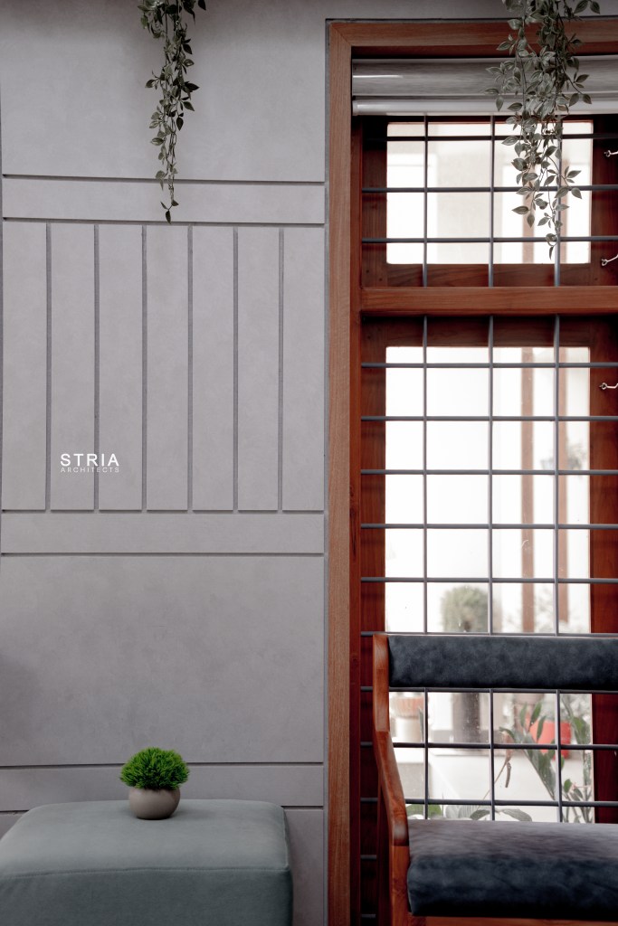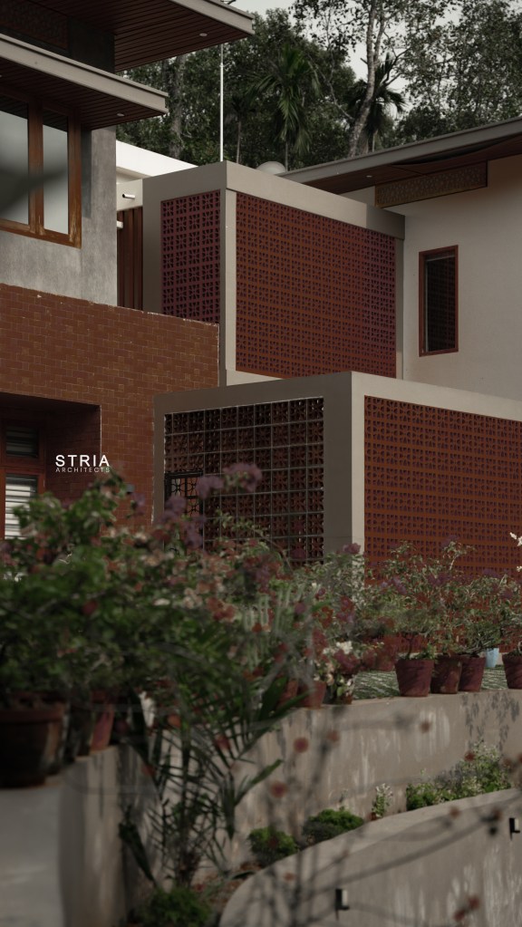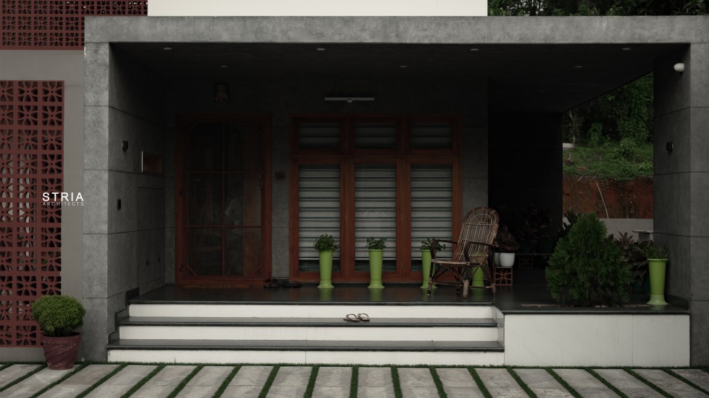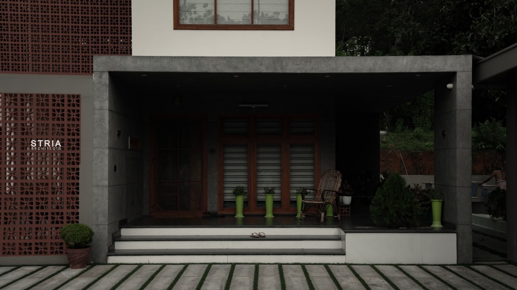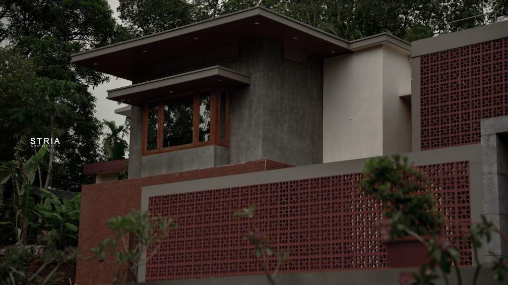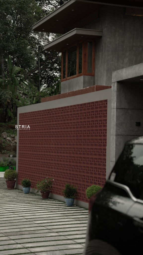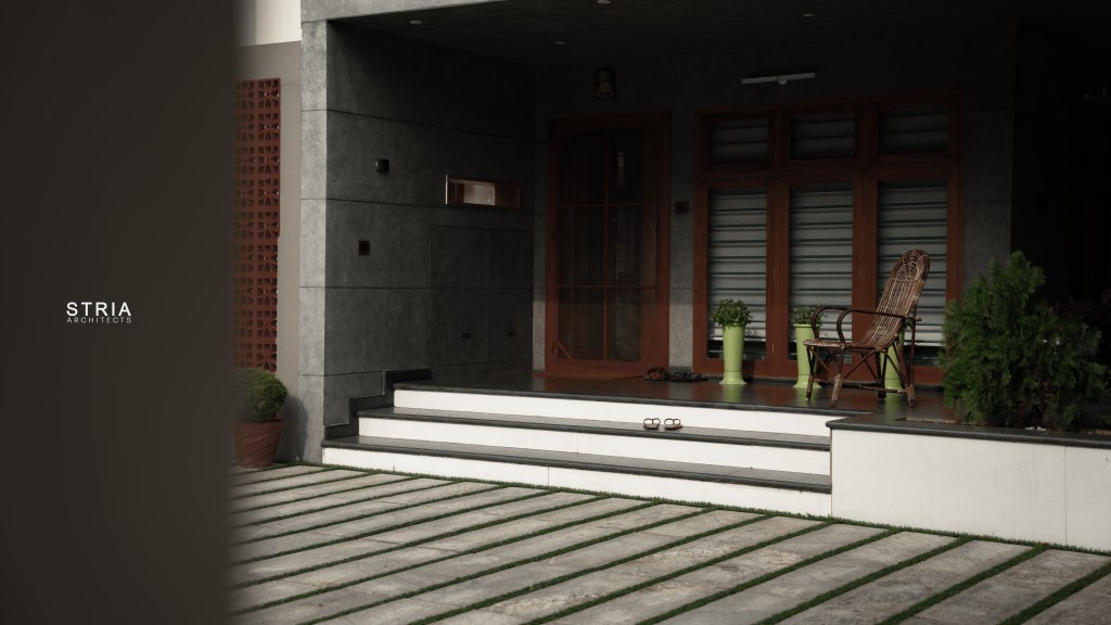 Having a large site allowed us greater freedom in design, and we were able to make the best use of the available space. The house follows a contemporary architectural style with a dark color theme, complemented by jallis that enhance ventilation and add an element of traditional charm. Together, these features give the home a rustic yet classy appearance that blends beautifully with the natural surroundings.