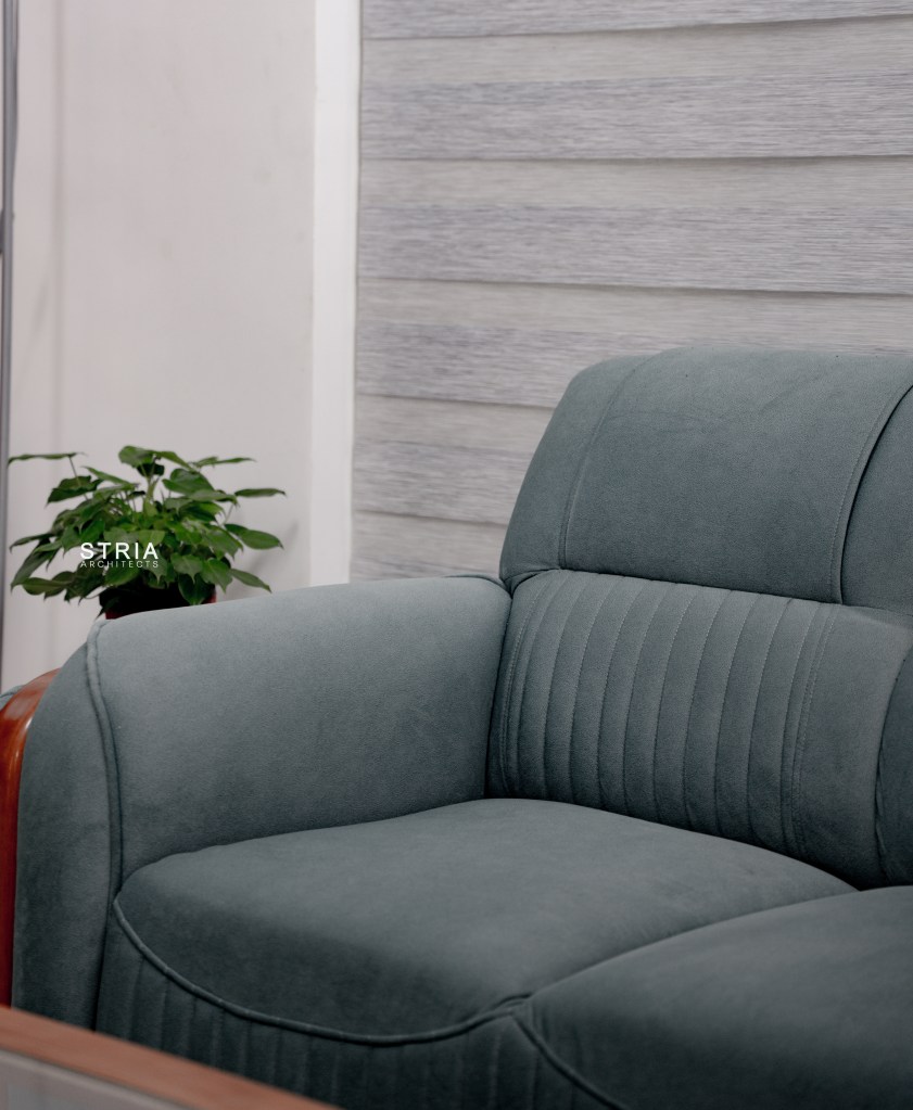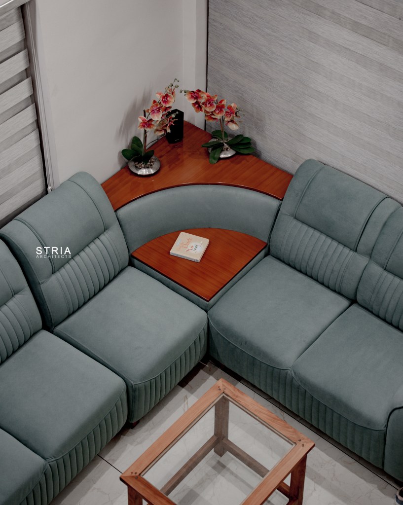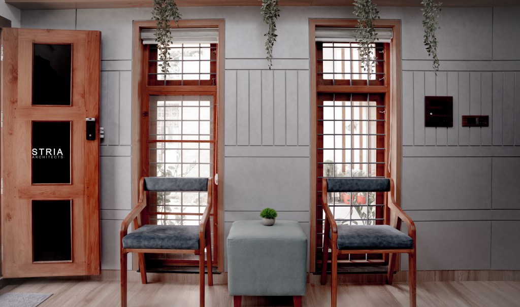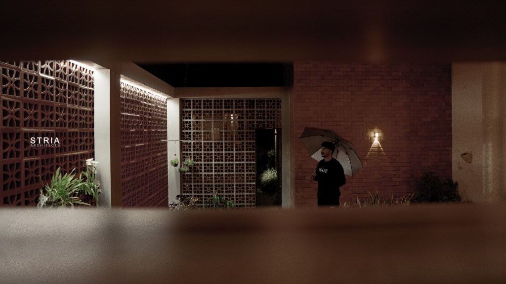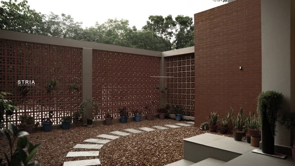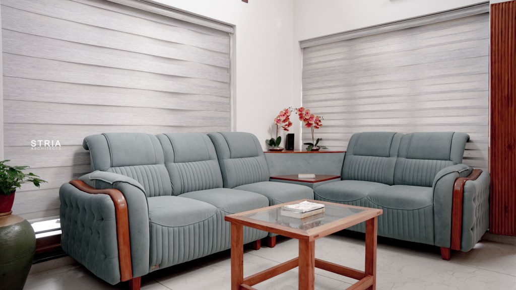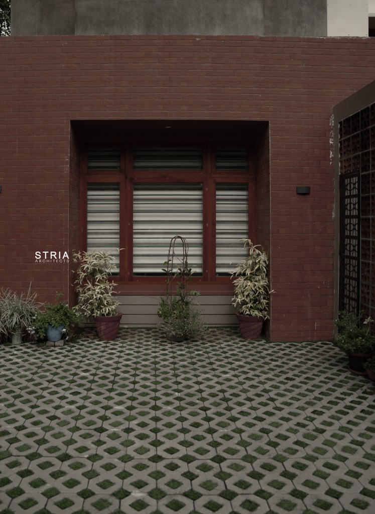 Having a large site allowed us greater freedom in design, and we were able to make the best use of the available space. The house follows a contemporary architectural style with a dark color theme, complemented by jallis that enhance ventilation and add an element of traditional charm. Together, these features give the home a rustic yet classy appearance that blends beautifully with the natural surroundings.