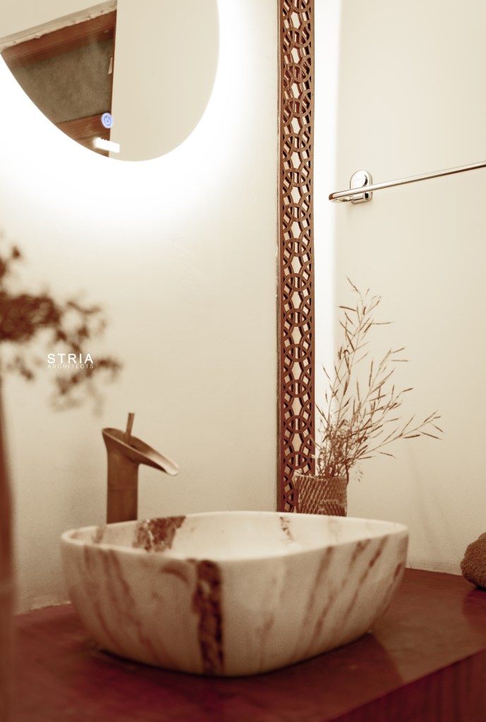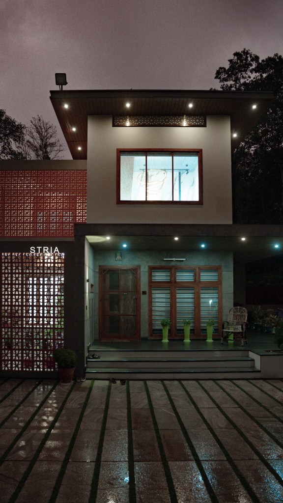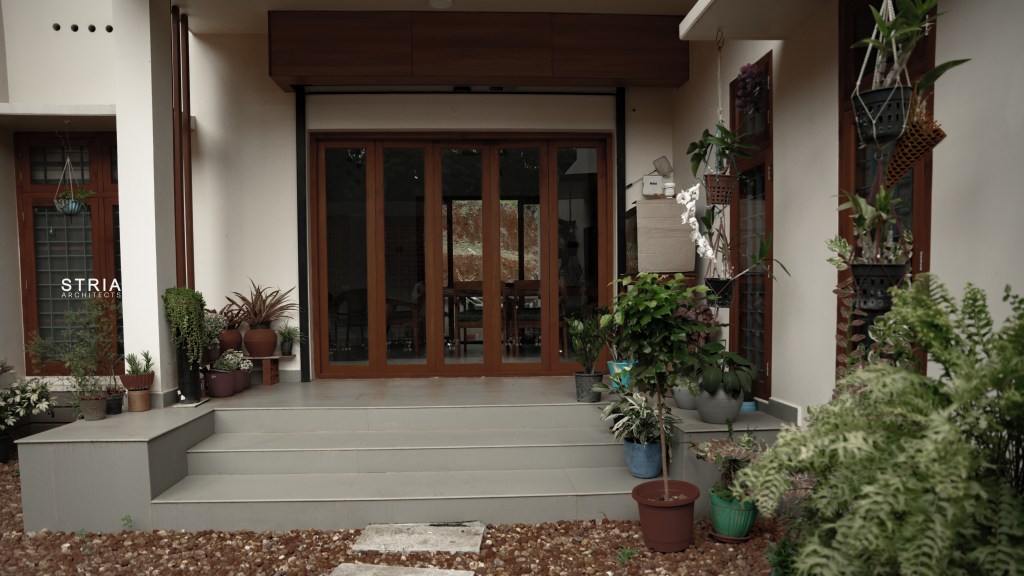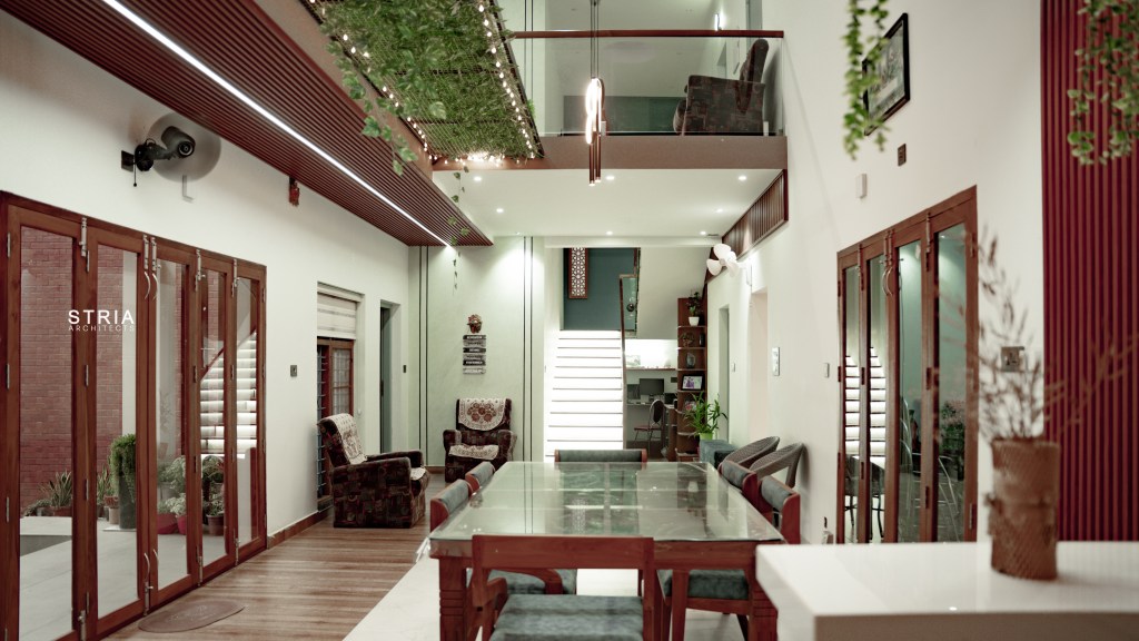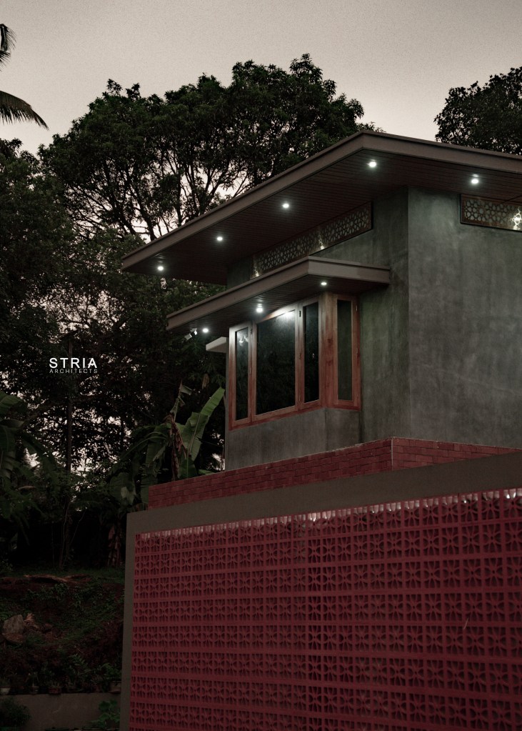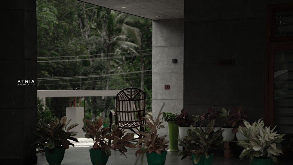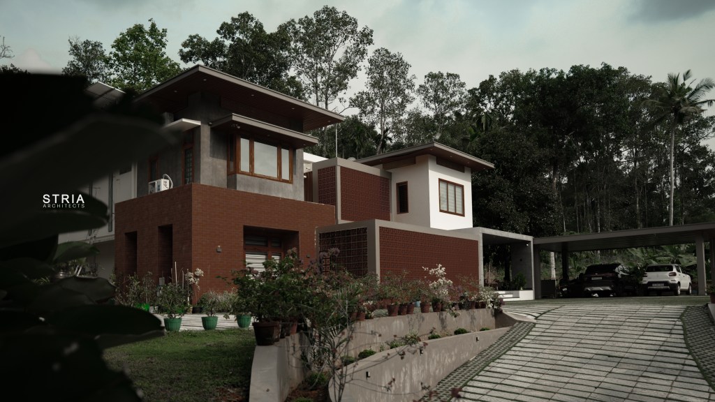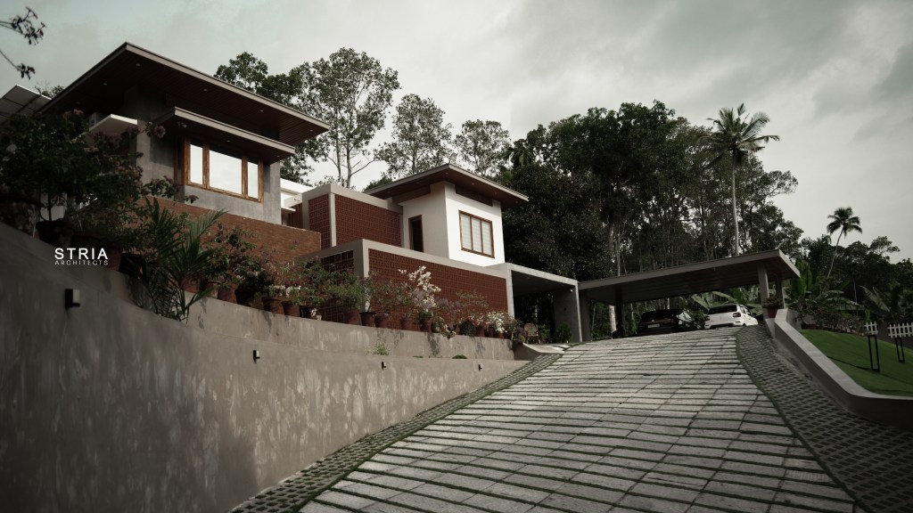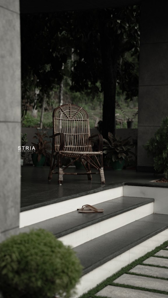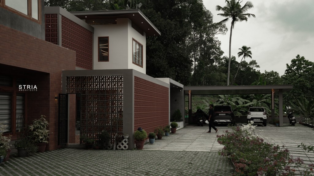 Project Description – Rebin’s residence, located on the outskirts of Pathanamthitta in a hilly region, presented a few challenges due to the site’s natural topography. However, this unique terrain also offered an opportunity to create a spacious and well planned design. The residence features two patios, double-height spaces, internal courtyards, an open kitchen, and two utility areas, ensuring both functionality and comfort.