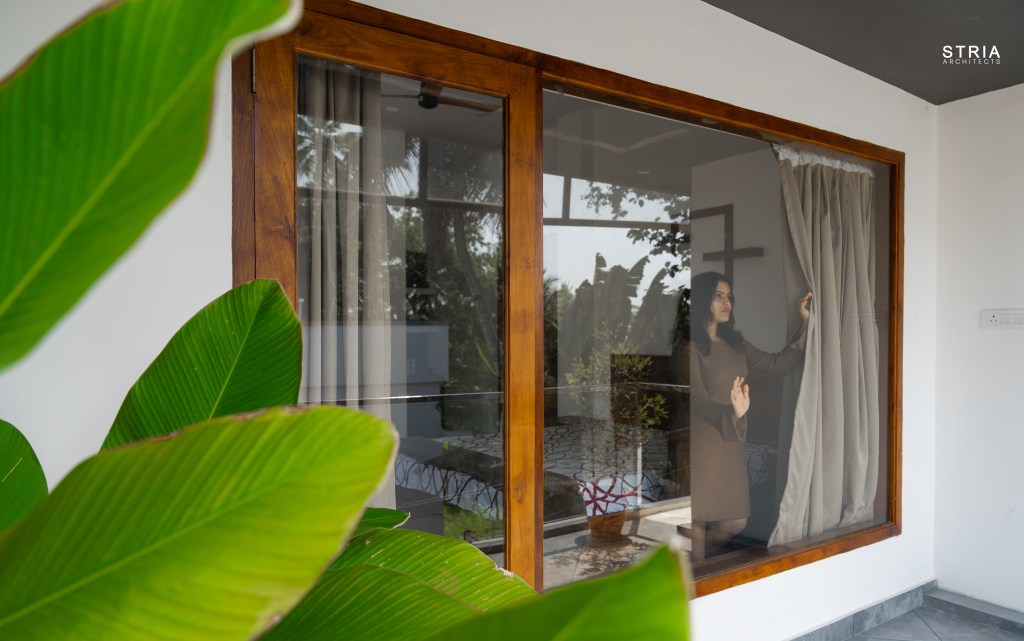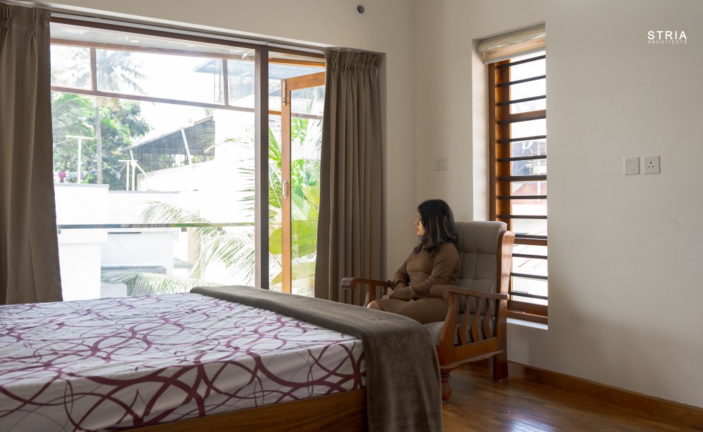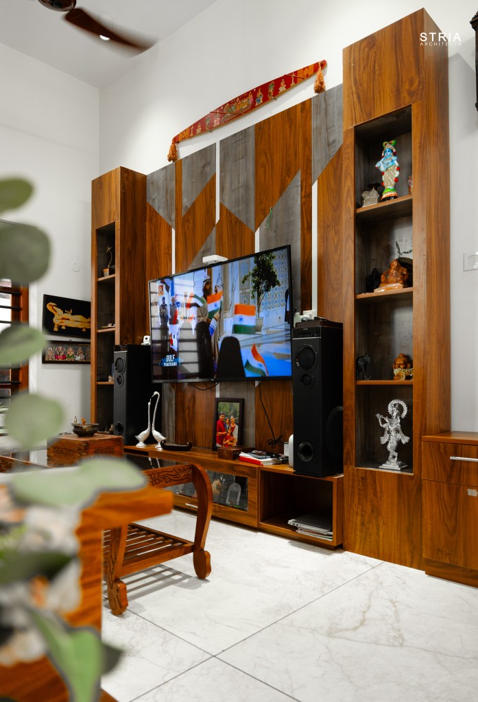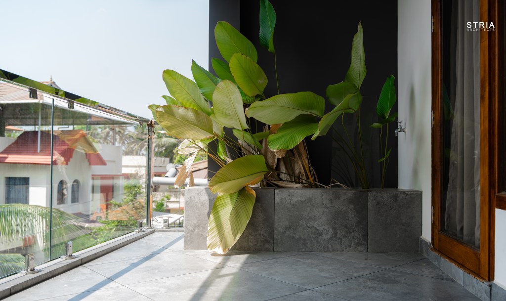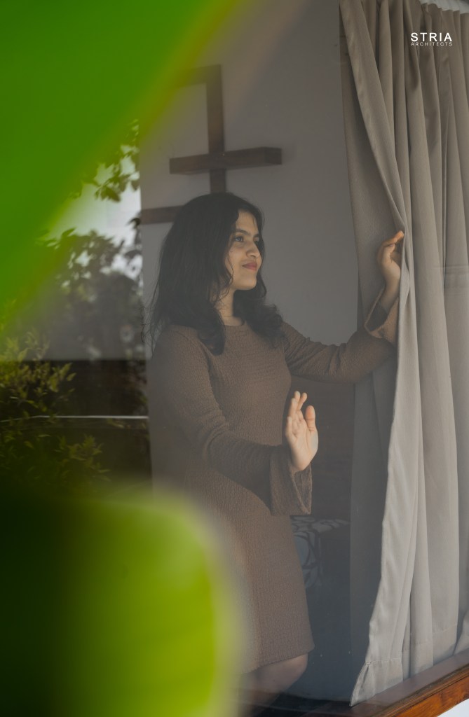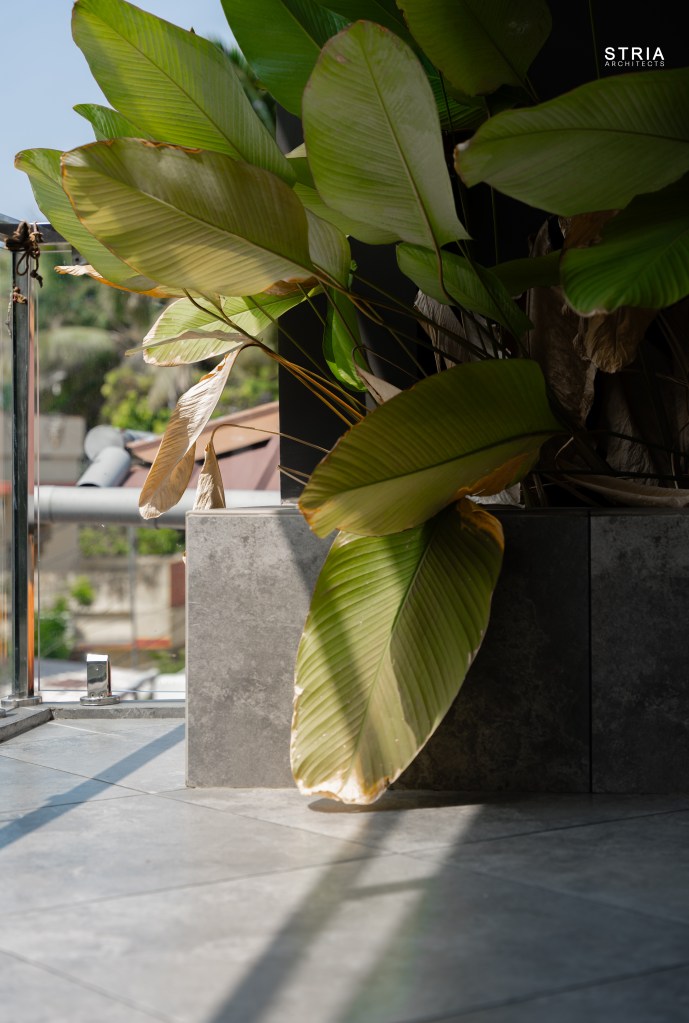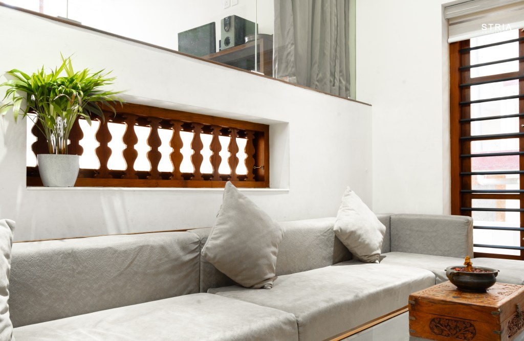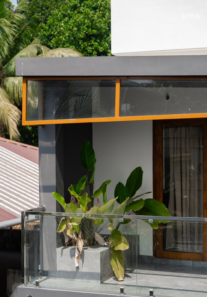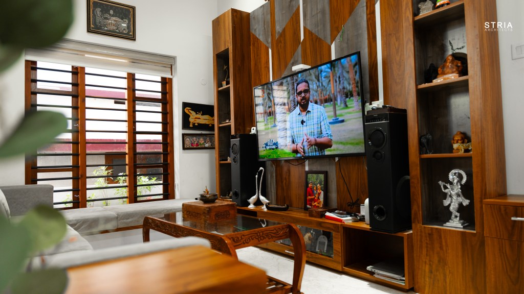 Project Description – Designed on a compact 3.5-cent plot, this 2500 sqft home defies its constraints with smart architectural elements. Featuring a mezzanine floor, 4 attached bedrooms, 2 living rooms, and large glass windows for abundant light and ventilation, the space feels open and expansive despite its narrow footprint.