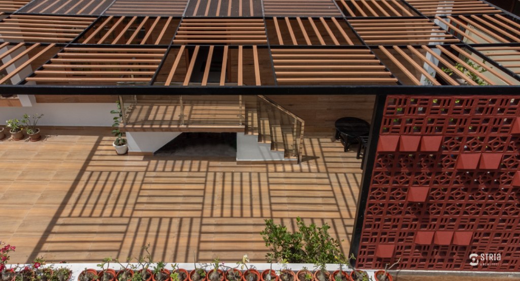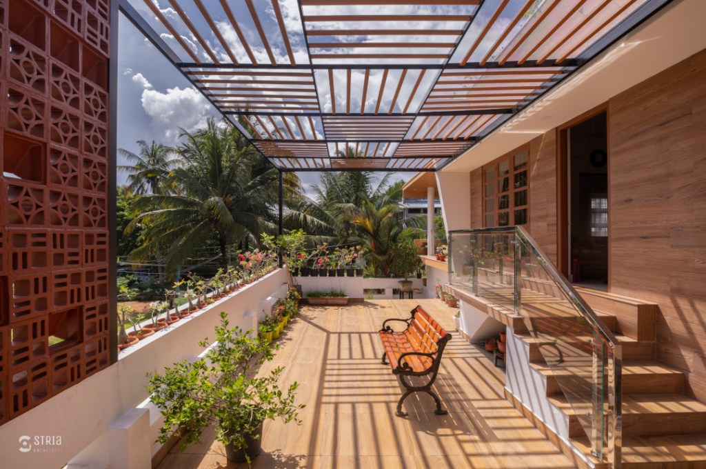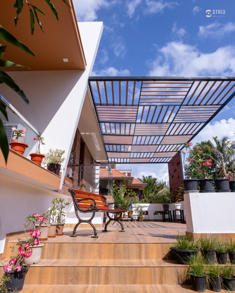 Project Description – This project is a residential renovation for a retired couple in Trivandrum. Here we proceeded with the plan to create a bright and airy indoor and outdoor environment. The design of Shivanjaly seeks to enhance the views of the private patio as well as the city. The land is located on a steep slope. The orthogonal character sought to orient the openings to the main view, guaranteeing privacy for the house. This way, we managed to create a large free area for the garden taking advantage of the sunniest orientation.