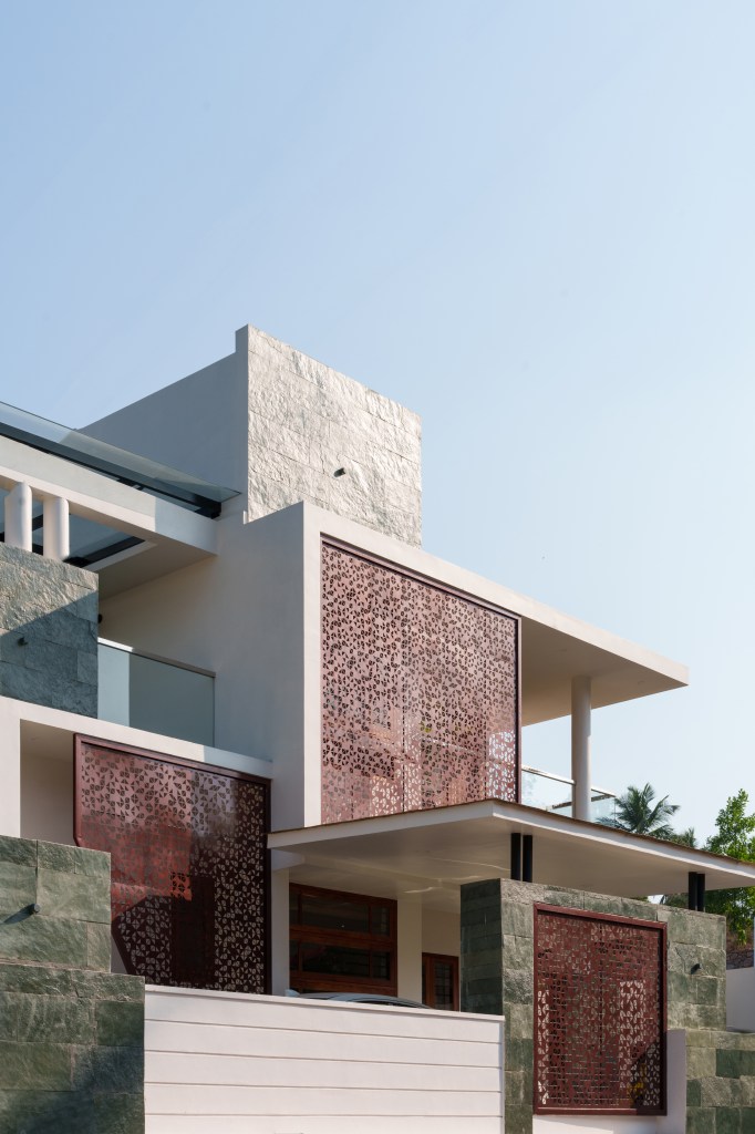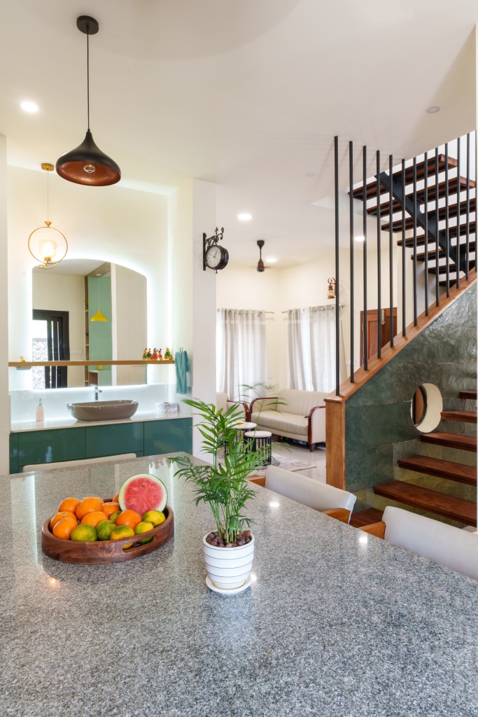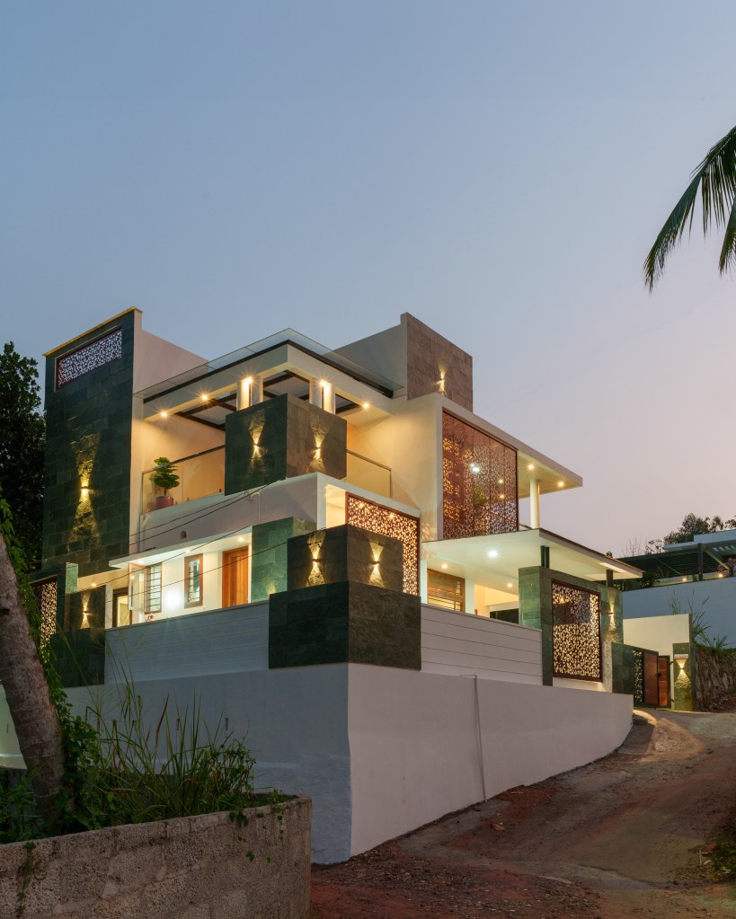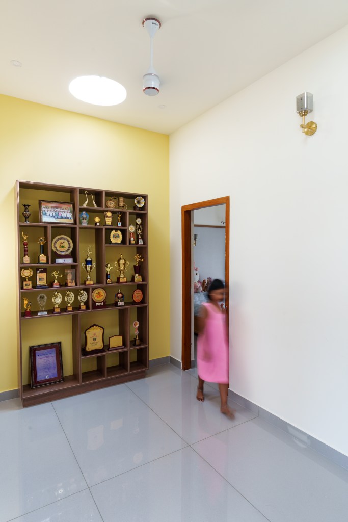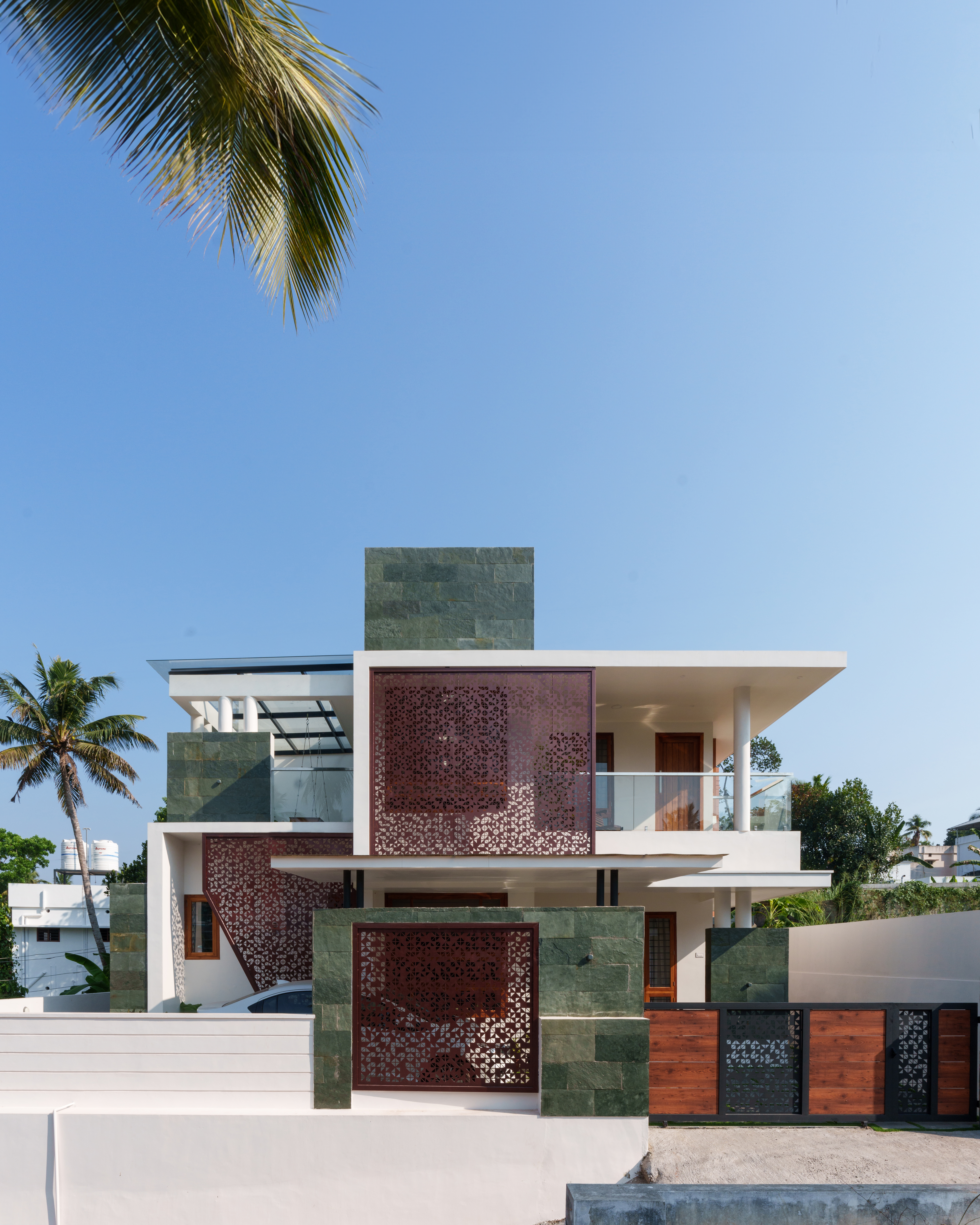 Navigating the spatial limitations, we prioritized efficient space utilization and strategic placement of each element to optimize functionality without sacrificing aesthetic appeal. The layout was carefully orchestrated to ensure fluid circulation and visual connectivity between different areas of the residence, fostering a sense of openness and cohesion.Nestled within the bustling urban landscape of Trivandrum city, our design aimed to create a serene oasis infused with lush greenery to counteract the surrounding urban density. To achieve this, we strategically incorporated large, strategically positioned windows to maximize natural light intake and facilitate passive ventilation, enhancing indoor air quality and promoting a sense of connection with the outdoors.