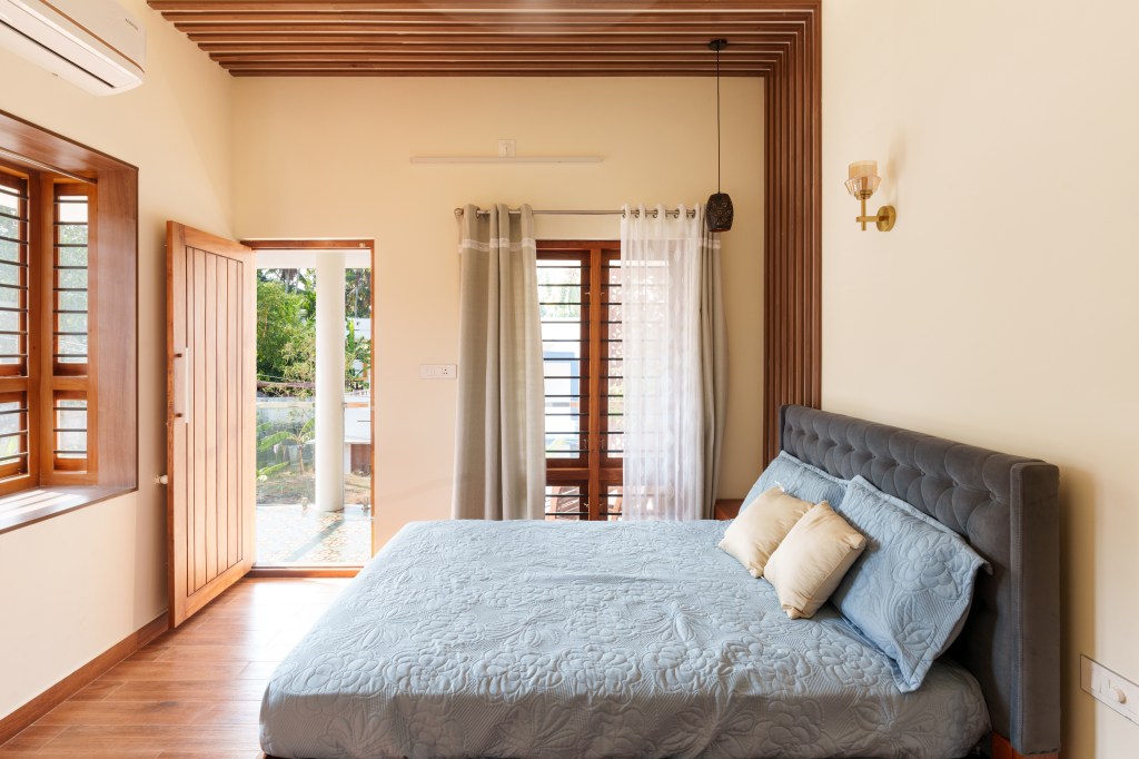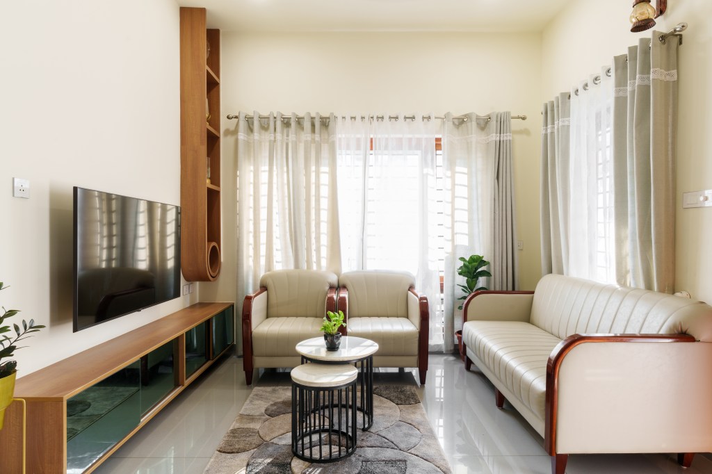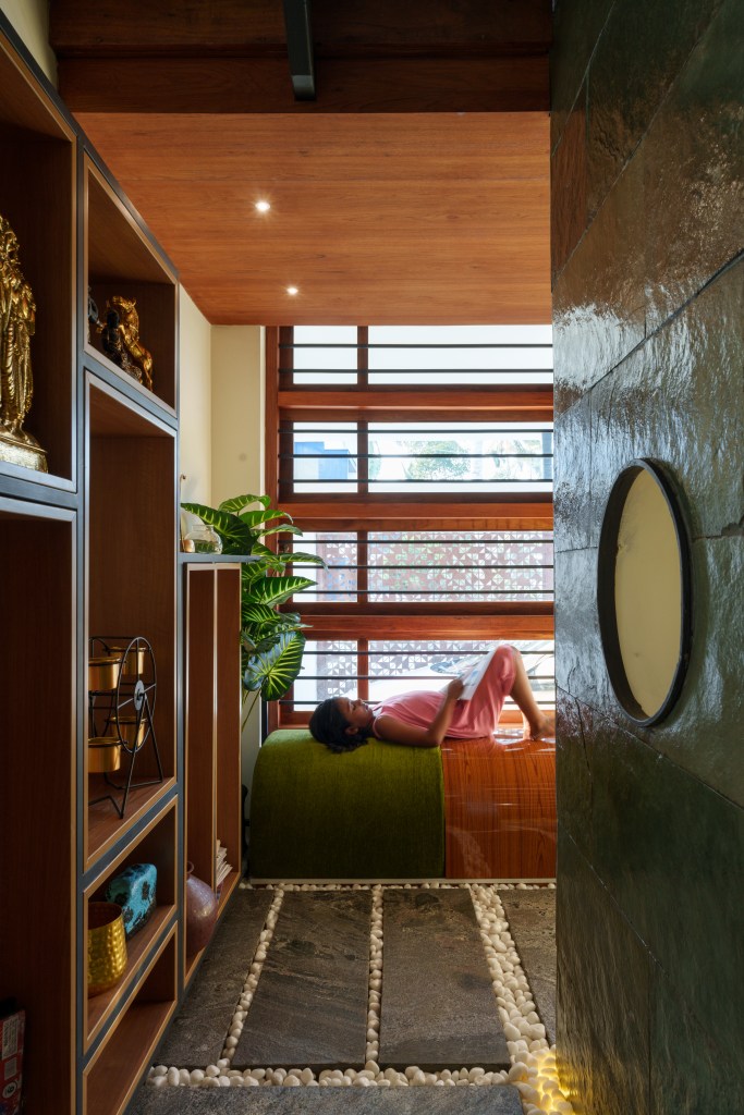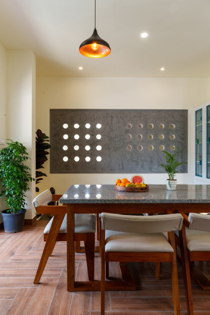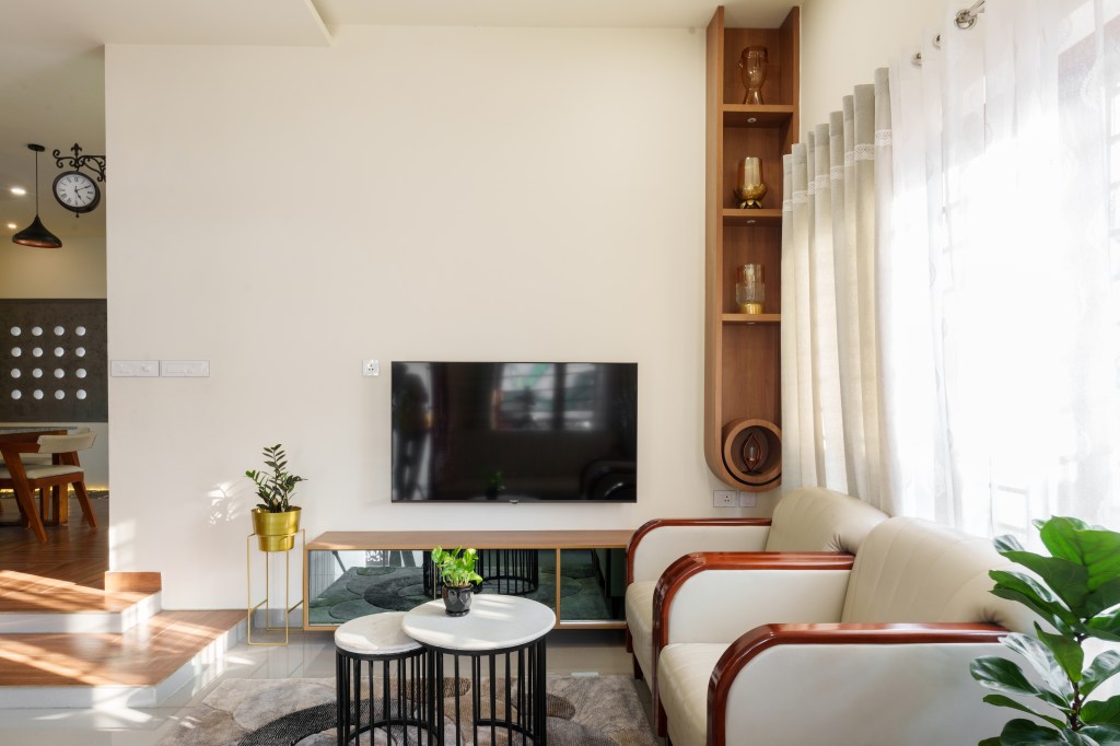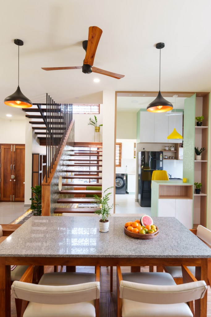 Navigating the spatial limitations, we prioritized efficient space utilization and strategic placement of each element to optimize functionality without sacrificing aesthetic appeal. The layout was carefully orchestrated to ensure fluid circulation and visual connectivity between different areas of the residence, fostering a sense of openness and cohesion.Nestled within the bustling urban landscape of Trivandrum city, our design aimed to create a serene oasis infused with lush greenery to counteract the surrounding urban density. To achieve this, we strategically incorporated large, strategically positioned windows to maximize natural light intake and facilitate passive ventilation, enhancing indoor air quality and promoting a sense of connection with the outdoors.