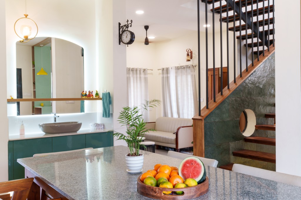The staircase design served as a striking architectural feature, not only facilitating vertical circulation but also doubling as a sculptural focal point that seamlessly integrated with the overall aesthetic language of the space. Additionally, the inclusion of Moroccan tiles added a touch of exotic flair, infusing the interior with character and visual interest while paying homage to the client’s cultural preferences.