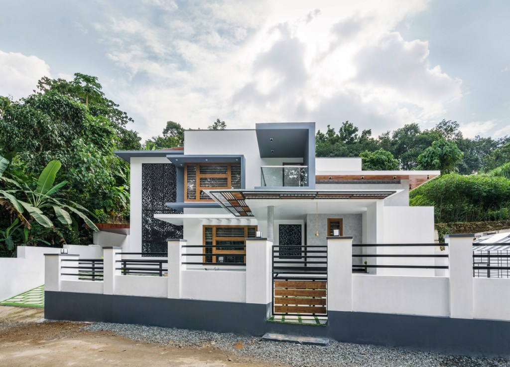 Project Description – The architectural design of Vipin’s residence, nestled in the outskirts of Kottayam, ingeniously navigates through challenging topography and the proximity of nearby canals. Despite these obstacles, the design successfully adheres to all pertinent rules and regulations governing construction in the area. The process of conceptualizing and executing the design was indeed intricate, as it required meticulous attention to detail in order to fulfill the client’s requirements while overcoming the inherent challenges of the site.
