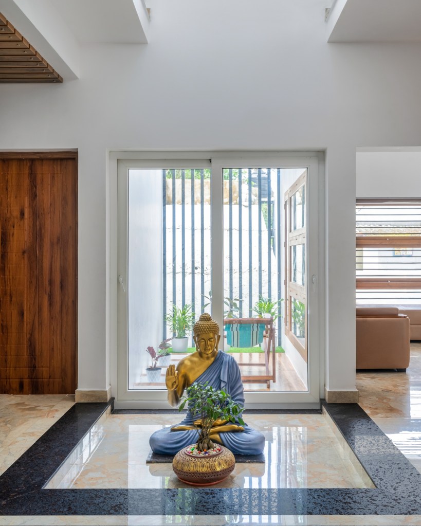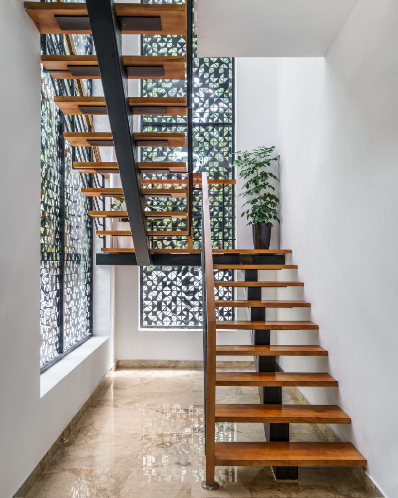 By skillfully integrating these architectural elements, the design of Vipin’s residence not only meets the functional needs of the occupants but also creates a harmonious relationship between the built environment and its natural surroundings. The result is a thoughtfully crafted living space that not only responds to the challenges of its context but also celebrates its unique qualities through innovative design solutions.